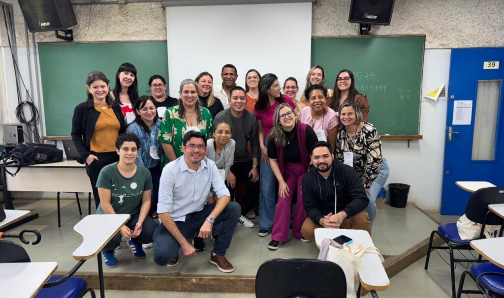 A foto no banner oficial, com estudantes da FAE/UFMG.